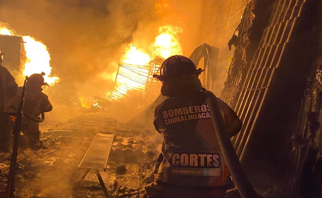 #Chilmahuacán, #EstadoDeMéxico.- La rápida intervención de los servicios de emergencia de Chimalhuacán logró sofocar un incendio que se desató en un