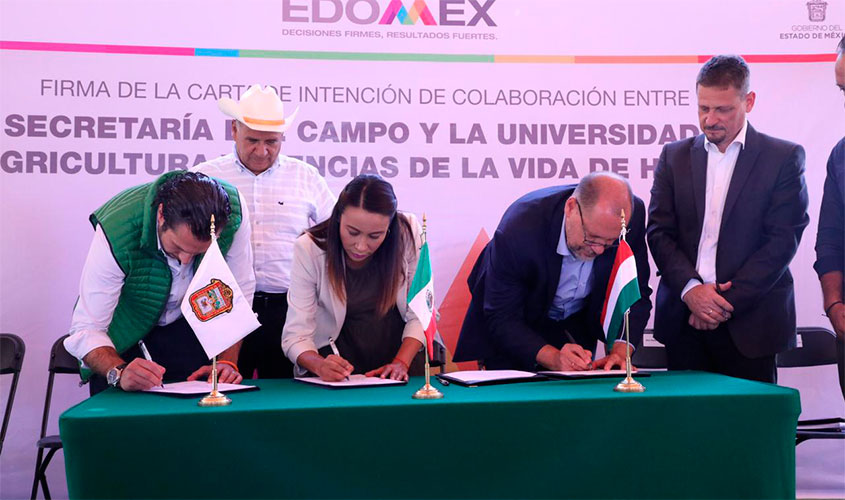 Acompañada del Embajador de Hungría en México, Zoltán Németh, del Doctor Csaba Gyuricza, Rector de la Universidad de Agricultura y Ciencias de la Vida de Hungría, así como del Coordinador de Asuntos Internacionales del Gobierno del Estado de México, José Pablo Montemayor, Mejía García subrayó la importancia de impulsar acciones de investigación que permitan elevar la calidad de producción de las y los productores mexiquenses.