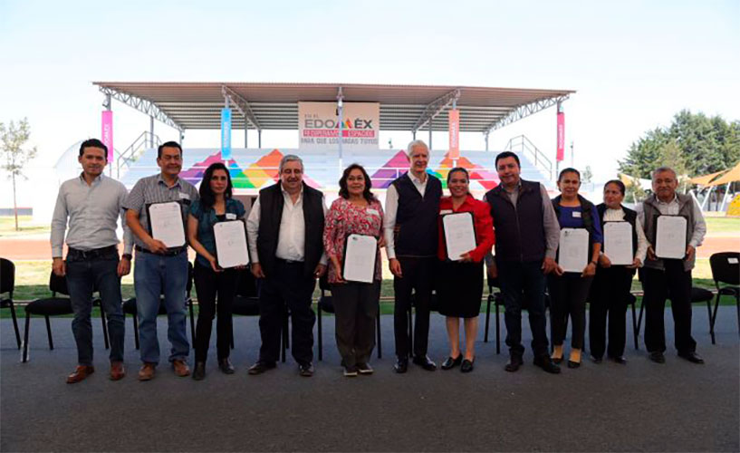 #EstadoDeMéxico.- En beneficio de mil familias de distintos municipios del Valle de Toluca, el Gobernador Alfredo Del Mazo Maza entregó títulos de propiedad y posesión, con los cuales el Gobierno estatal llegó a más de 47 mil títulos de este tipo otorgados en seis años, con los que se brinda certeza jurídica a las personas sobre sus bienes.