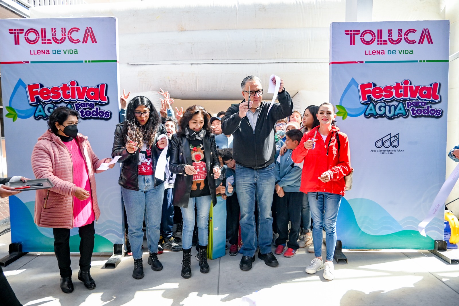 Eduardo Hernández Pardo, Director General del Organismo de Agua y Saneamiento de Toluca (OAyST), acompañado por la directora del plantel, Martha C. Contreras Guadarrama, y demás administrativos de la escuela, destacó la colaboración de más de 14 escuelas en el festival, subrayando el compromiso conjunto de la sociedad y el ayuntamiento para sensibilizar sobre el cuidado del agua desde temprana edad.