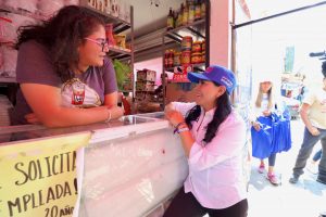 En un recorrido por la avenida Rancho San Antonio, la candidata habló con comerciantes y transportistas de la zona a quienes dio a conocer sus propuestas y les reconoció que son el alma y corazón de nuestro municipio, así como escuchar sus peticiones con el fin de sumar ideas para el crecimiento económico local.