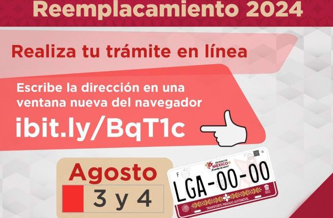 #EstadoDeMéxico.- La Secretaría de Finanzas estatal informa que de acuerdo con el calendario de reemplacamiento, el mes de agosto corresponde al engomado rojo con terminación de placas 3 y 4, sin embargo, aquellos propietarios que no alcancen a realizar su trámite este mes también podrán hacerlo en septiembre sin ningún tipo de impacto ni penalización.
