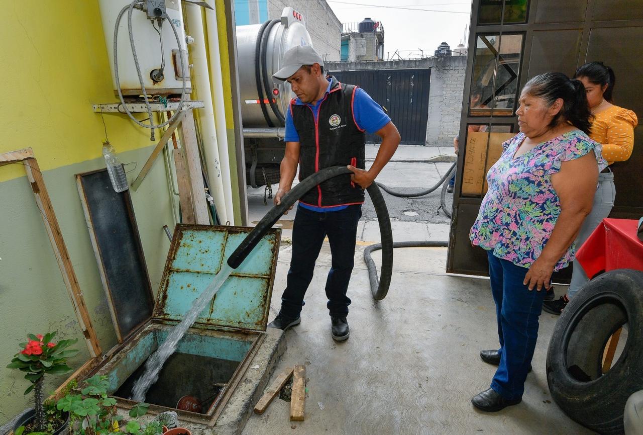 Desde temprana hora, las pipas pertenecientes al organismo Servicios de Agua Potable, Alcantarillado y Saneamiento de Atizapán de Zaragoza (SAPASA), de Protección Civil y Bomberos, así como de la Dirección de Servicios Públicos y las que destinó la CAEM, distribuyen más de 300 mil litros.