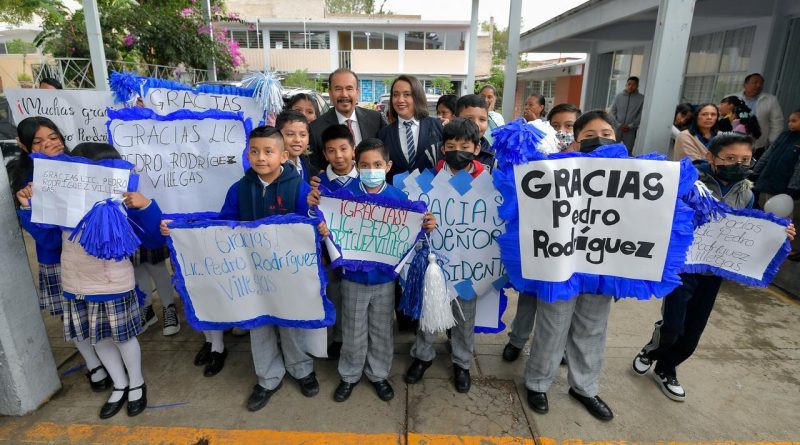 #Atizapán, #Edoméx.- El Alcalde de Atizapán de Zaragoza, Pedro Rodríguez Villegas, acudió a la Escuela Primaria Emma Godoy Lovato, en la Colonia Alfredo V. Bonfil, para inaugurar y entregar obras de equipamiento que incluyeron 5 salones de estudio, un espacio para biblioteca, núcleos sanitarios nuevos para niñas y niños, así como 200 mesabancos, pizarrones, escritorios y sillas para los maestros y maestras.