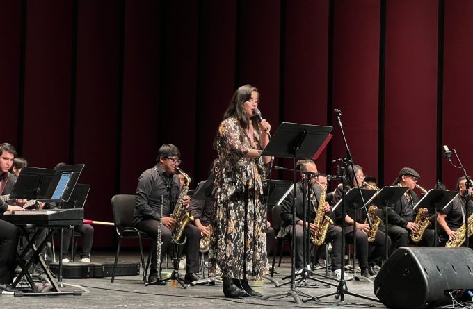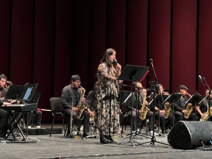 En la Sala de Conciertos “Elisa Carrillo” hubo un concierto con la voz de Jenny Beaujean, acompañada de la Escuela de Enseñanza Musical (Esem) Texcoco Big Band Jazz, con un repertorio conformado por estándares de este género musical.
