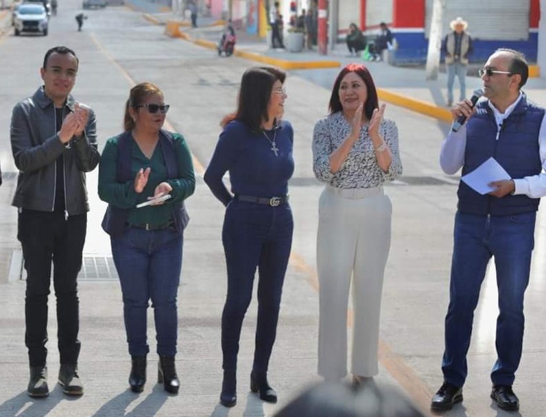 #Tecámac, #EstadoDeMéxico. – Entre aplausos y gritos de alegría de habitantes del pueblo San Francisco Cuautliquixca y vecinos de las distintas zonas de Tecámac, la senadora Mariela Gutiérrez Escalante, el diputado Samuel Hernández Cruz, la presidenta municipal Rocio Miguel Hernández, la presidente electa Rosi Wong y el Secretario del ayuntamiento Carlos Galindo Bertaud, entregaron las obras de rehabilitación del camino a San Pablo Tecalco, así como ela construcción de una caja de retención de agua pluvial, un pozo de infiltración al lado de Chedraui y la pavimentación con concreto hidráulico hasta Los Olivos para evitar, con esto, inundaciones y aprovechar el agua de lluvia.