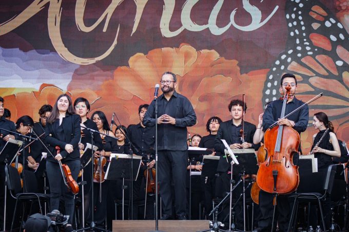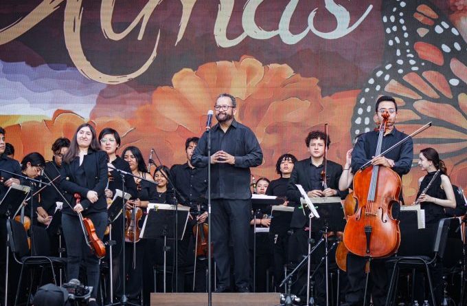 La Orquesta del Conservatorio de Música del Estado de México (COMEM) deleitó al público con piezas como “El Andariego”, “Llorona”, “Adoro”, “Sabor a mí”, “Veracruz”, “Coincidir”, “Bésame mucho” y el “Huapango de Moncayo”.