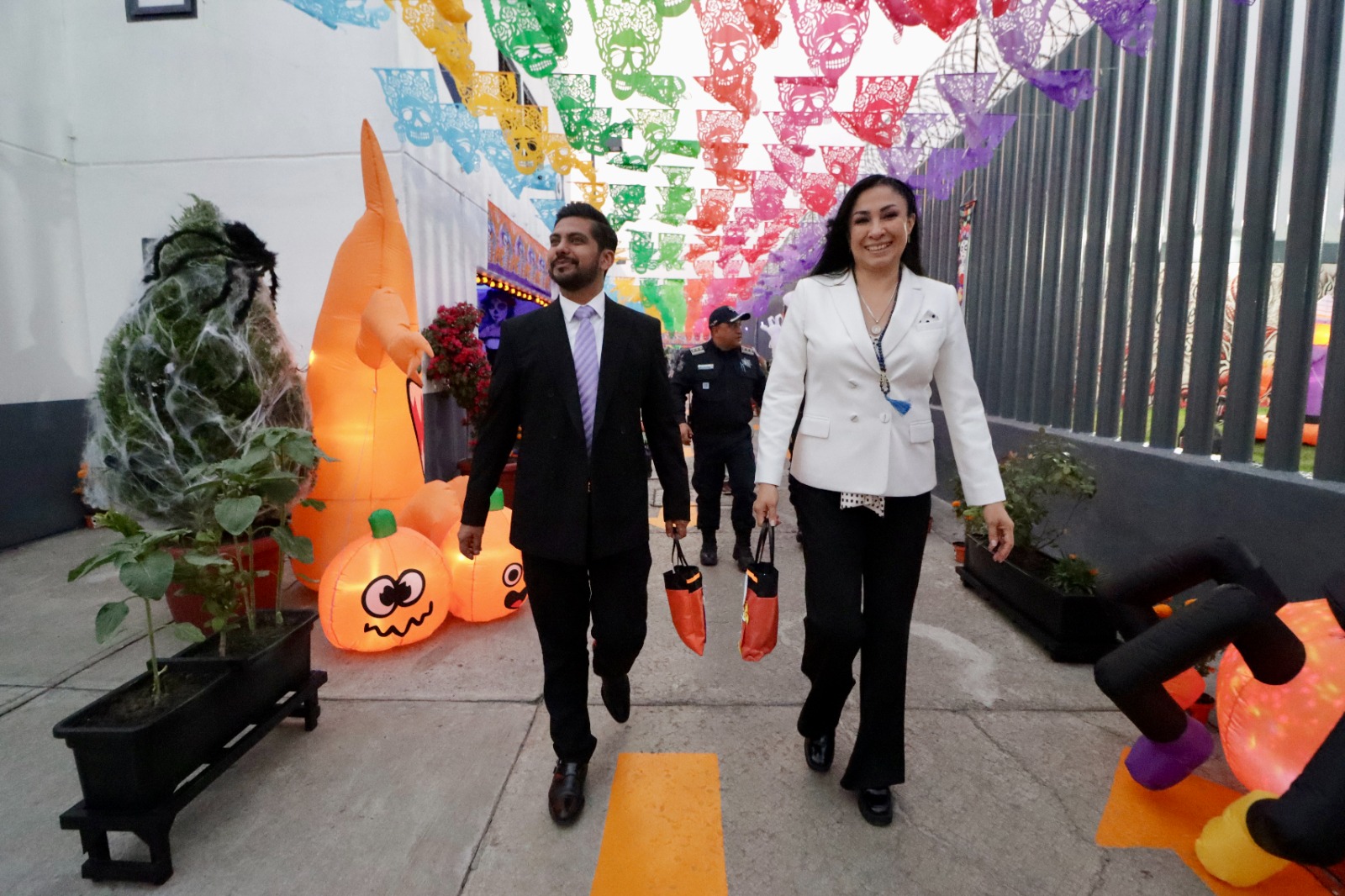 #Nezahualcóyotl, #Edoméx.- El Presidente Municipal, Adolfo Cerqueda Rebollo, acompañado por la Directora del Centro Penitenciario Neza-Bordo, Verónica Jiménez, realizó un recorrido por las instalaciones del centro, donde pudieron apreciar la competencia de ofrendas que se llevó a cabo en conmemoración del Día de Muertos.