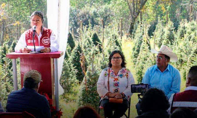 Al inaugurar la temporada de venta de árboles de Navidad en el Estado de México con el corte del primer árbol, María Eugenia Rojano Valdés, Secretaria del Campo, aseguró que el Gobierno de la Maestra Delfina Gómez Álvarez seguirá impulsando esta importante actividad silvícola que genera empleos y ayuda a proteger los bosques al ser una alternativa a la tala clandestina.
