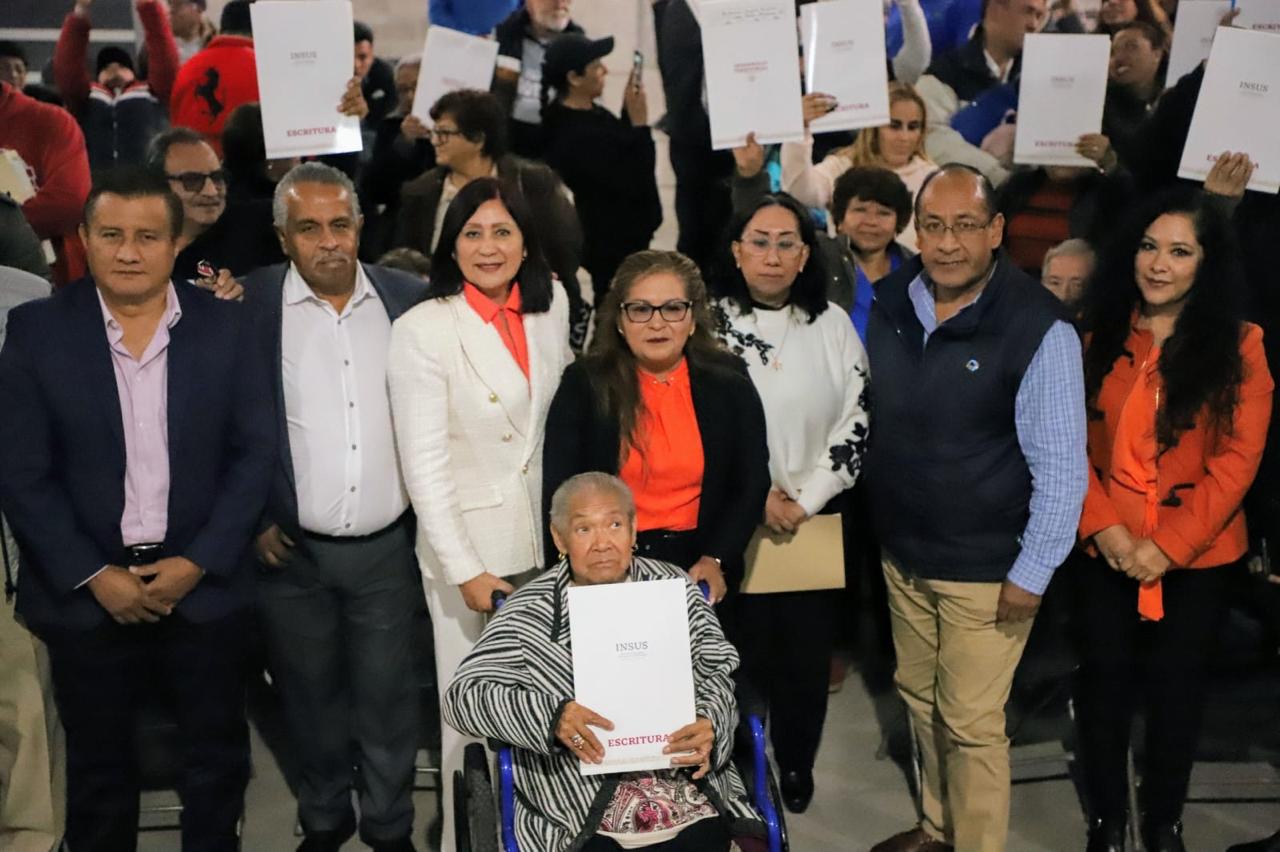 #Tecámac, #Edoméx.- La presidenta municipal, Rocío Miguel Hernández, encabezó la entrega de escrituras por parte del Instituto Nacional del Suelo Sustentable (INSUS), que benefician a 86 familias tecamaquenses de las colonias San Pedro Atzompa, Terramote y Santa Cruz.