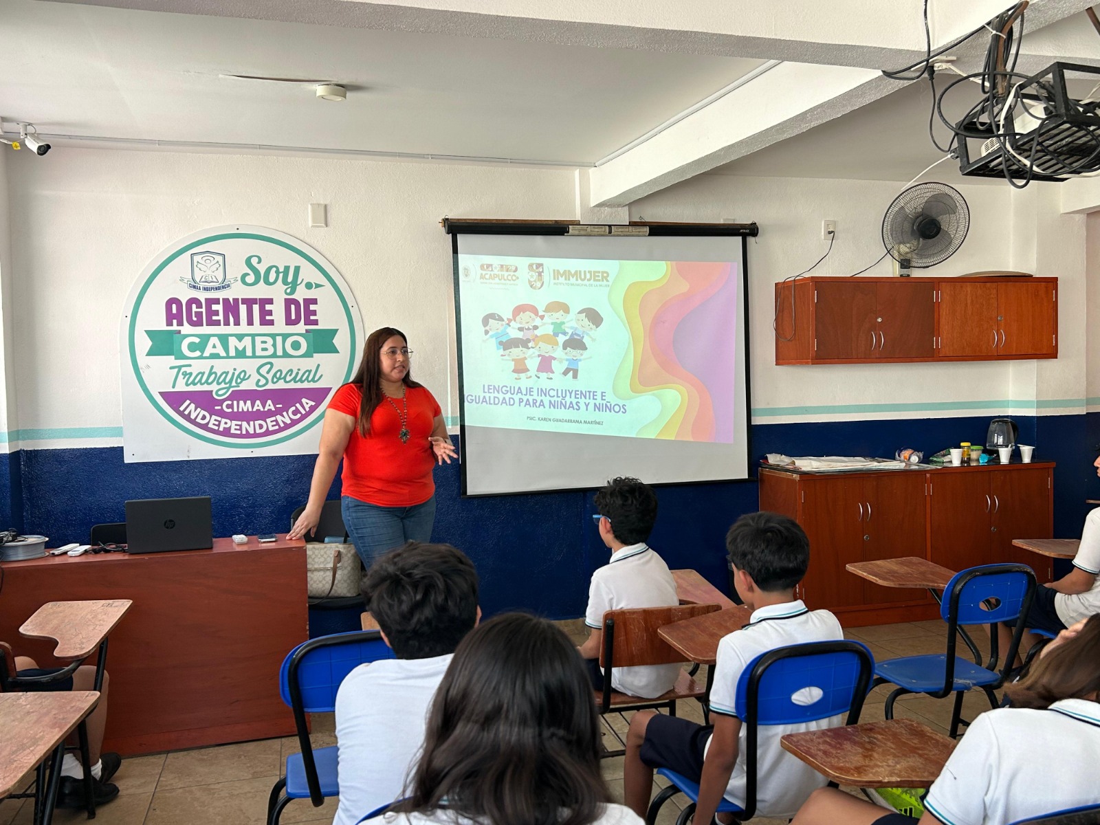 Como parte de los 16 Días de Activismo contra la Violencia de Género, que promueve el Gobierno de Acapulco por iniciativa de ONU Mujeres, personal del IMMUJER asistió al Centro Integral Multidisciplinario de Actividades Académicas (CIMAA) Independencia para brindar la charla “Lenguaje incluyente no sexista”.