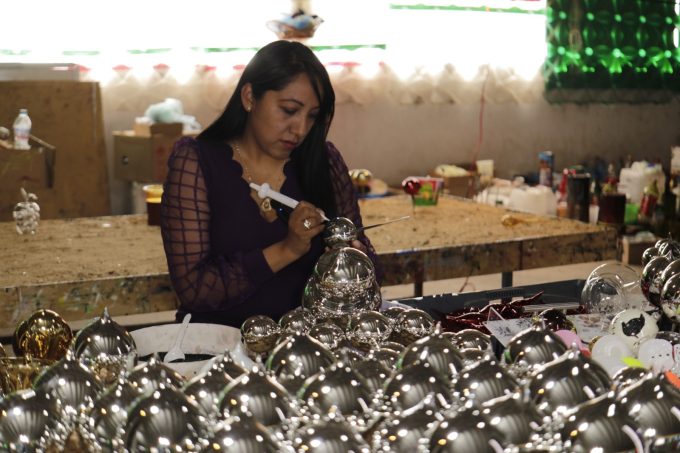 El taller tiene tres años en el mercado y actualmente laboran 16 personas; también colabora con productores de árboles de Navidad de Xonacatlán, para generar una experiencia completa de adquirir no sólo el árbol, sino también las esferas.