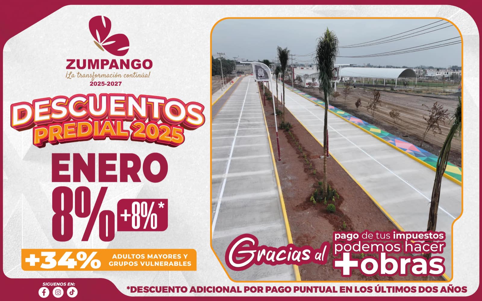 Los mejores descuentos de inicio de año para Zumpango; ofrecen descuentos en pagos de predial / @AyuntamientoZum >>>