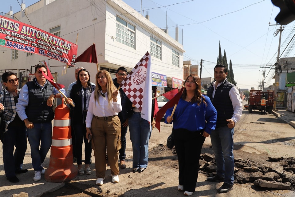 #Cuautitlán, #Edoméx.- La presidenta municipal, Juanita Carrillo, dio el banderazo de arranque en Avenida de los Fresnos y Avenida Teyahualco, como parte de su compromiso con calles más seguras y una movilidad ordenada.