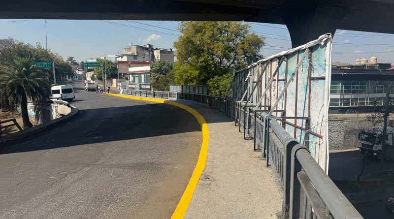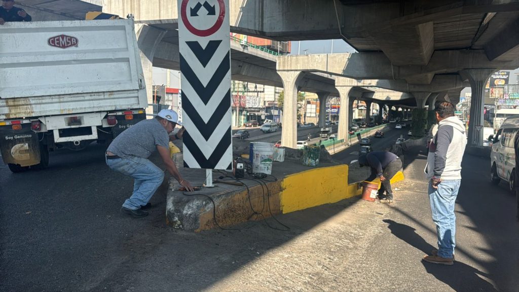 Cuadrillas del Departamento de Conservación realizaron el remozamiento de esta importante vialidad, que conecta con el Mexipuerto de Cuatro Caminos y es un paso clave hacia la Ciudad de México, por donde transitan diariamente miles de vehículos.