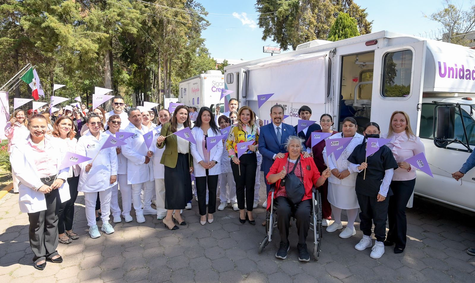 El Presidente Municipal, Pedro Rodríguez Villegas, en compañía de la Profa. Arévalo Rubio, encabezó el banderazo de salida de estas unidades móviles, las cuales brindarán atención médica en áreas como medicina general, odontología, mastografía, papanicolaou, optometría, nutrición, toma de signos vitales y vacunas.
