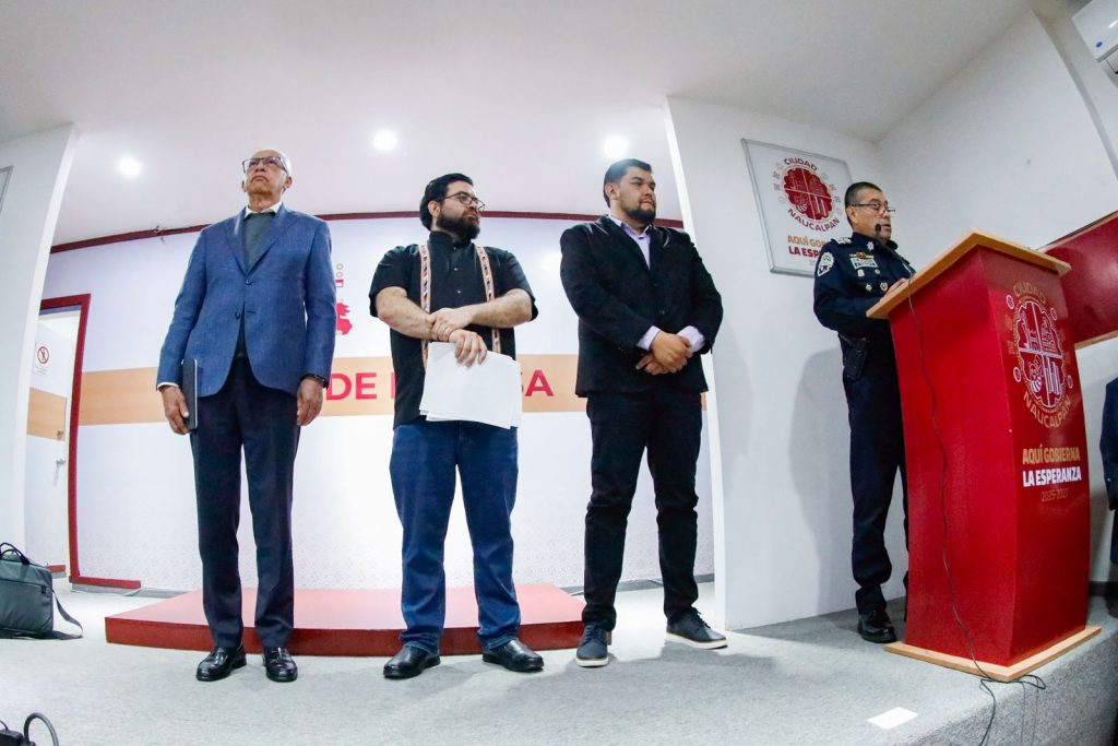 A la presentación de la Estrategia de Seguridad, lo acompañaron, Jorge Amador, creador del modelo de Seguridad más efectivo en el área metropolitana, en Ciudad Nezahualcóyotl; el director de Seguridad Ciudadana y Movilidad Segura, Daniel Vargas Castañeda, quien detalló las detenciones que se han logrado a lo largo de las primeras semanas de gobierno, y el secretario del Ayuntamiento, Erick Alejandro Morales Velasco.