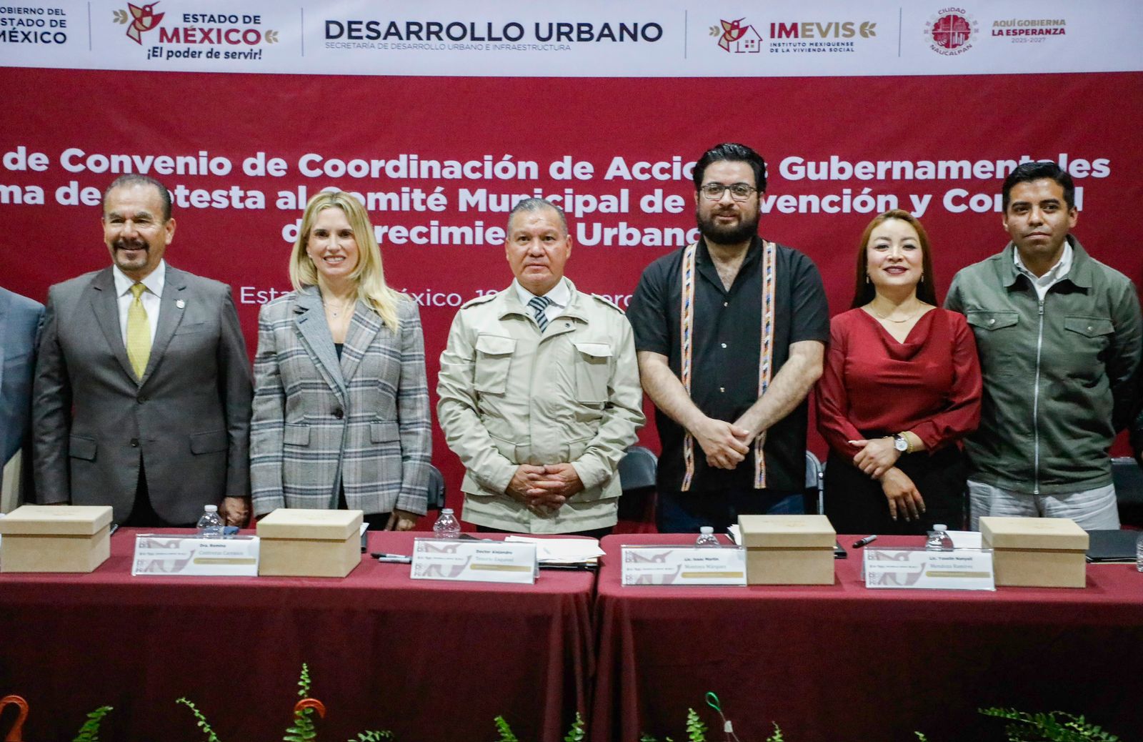 #Naucalpan, #Edoméx.- A fin de consolidar el derecho a la vivienda, la regularización del suelo en el municipio, así como promover el desarrollo urbano ordenado y llevar justicia social a las comunidades más olvidadas, el presidente municipal, Isaac Montoya Márquez, firmó el Convenio de Coordinación de Acciones Gubernamentales con el Instituto Mexiquense de la Vivienda Social (IMEVIS) y tomó protesta como parte del Comité Municipal de Prevención y Control del Crecimiento Urbano.