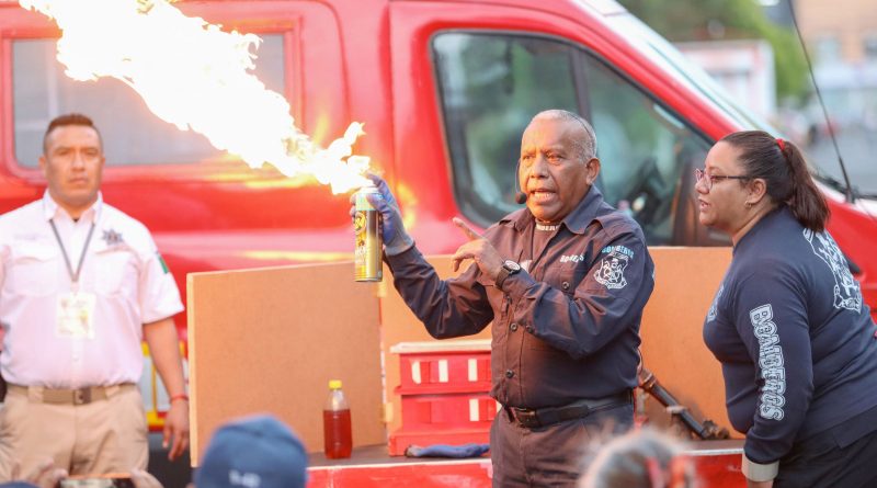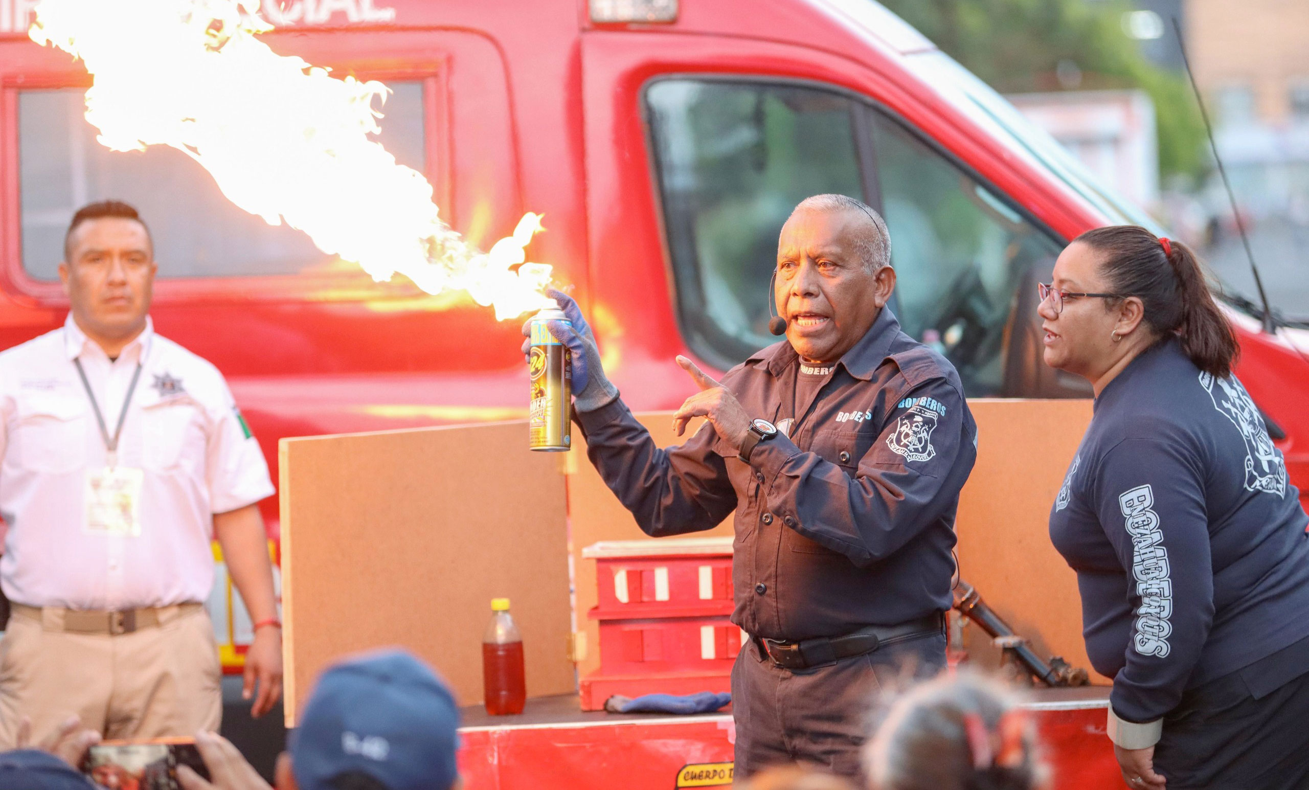 Cada sesión, impartida por personal especializado, abordó temas como “Manejo de extintores”, “No te quemes”, “Prevención de incendios”, “Riesgos en el hogar”, “Simulacro por explosión” y “Uso seguro del gas LP”.