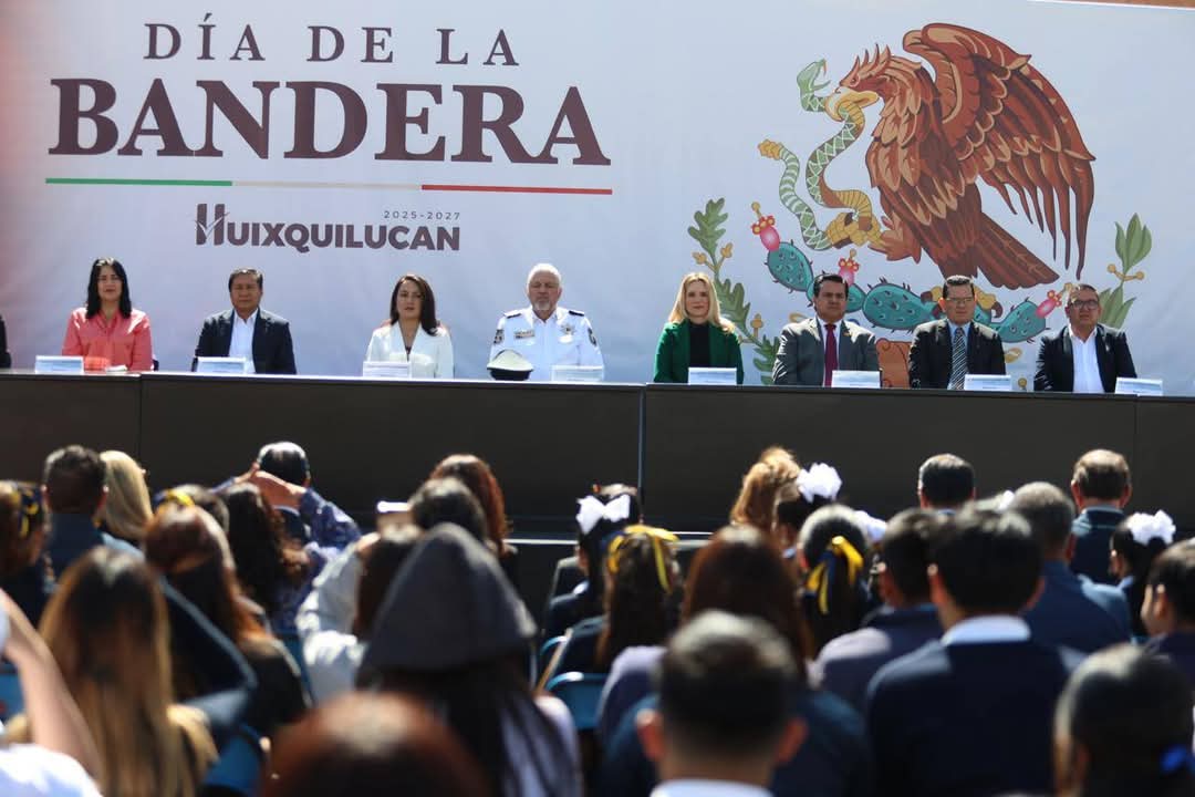 #Huixquilucan, #EstadoDeMéxico. – En el marco del Día de la Bandera Nacional Mexicana, la presidenta municipal de Huixquilucan, Romina Contreras Carrasco, llevó a cabo un izamiento de la insignia de nuestro país, para conmemorar la adopción de la bandera tricolor como símbolo nacional de México.