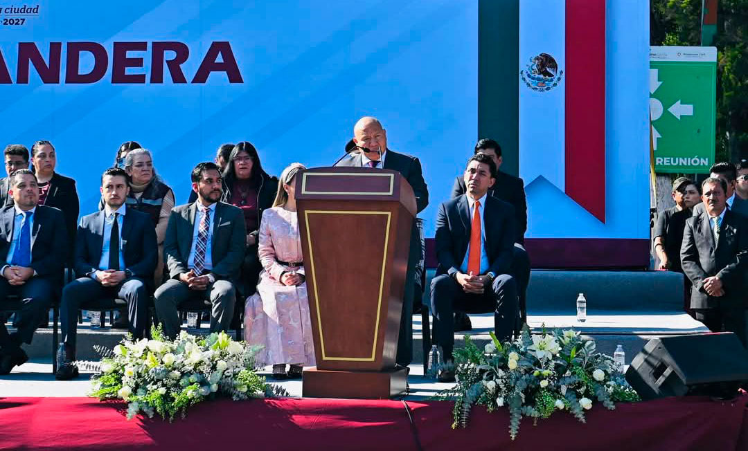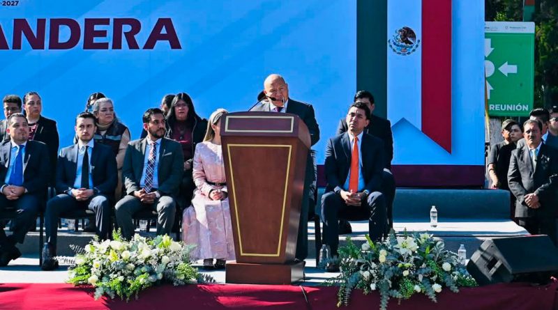 El alcalde recalcó que a la Bandera mexicana todas y todos los mexicanos la honramos y juramos lealtad, ya que es símbolo patrio que representa la unidad nacional, valor y patriotismo en tiempos de paz o cuando la Nación se ve amenazada.
