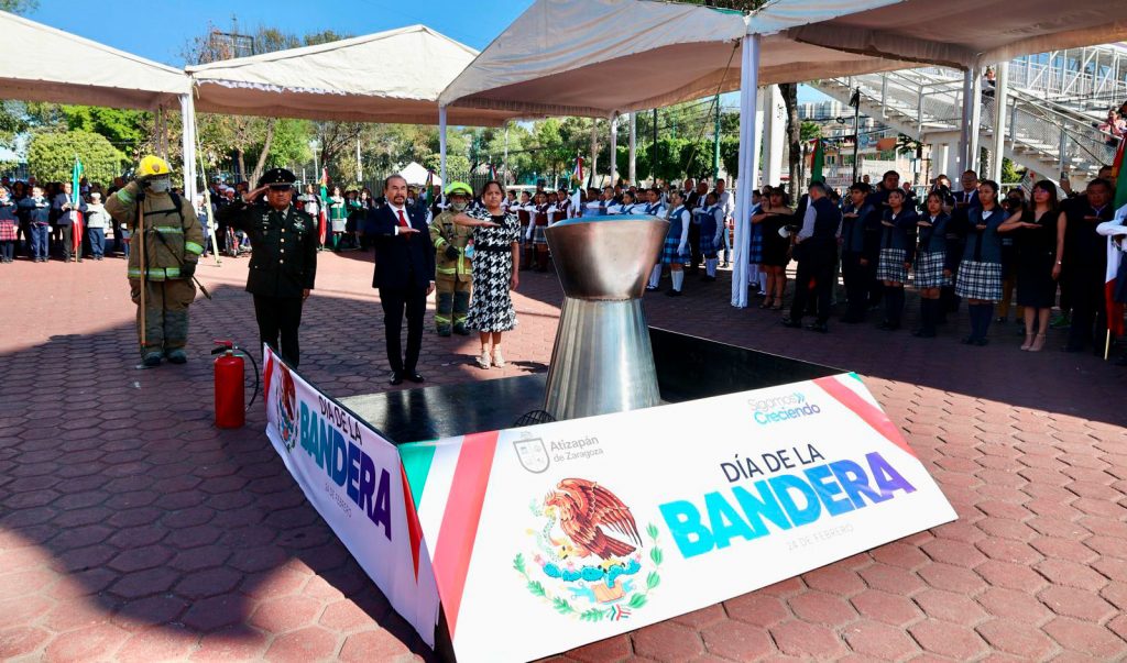 #Atizapán, #Edoméx.- El presidente municipal, Pedro Rodríguez Villegas, encabezó la ceremonia conmemorativa del Día de la Bandera en la explanada del Palacio Municipal, acompañado de su esposa Profesora Patricia Arévalo Rubio, presidenta honoraria del Sistema Municipal DIF de la Doctora Gabriela Carreño Muriño, directora de la Normal de Atizapán y representante personal del maestro Miguel Ángel Hernández Espejel, secretario de Educación, Ciencia, Tecnología e Innovación del Gobierno del Estado de México del Coronel de infantería Álvaro Vázquez Zacarías, representante del Ejército Mexicano y del diputado local Anuar Roberto Azar Figueroa así como regidores y directores de la actual administración acompañados de padres de familias y estudiantes para honrar a nuestro lábaro patrio.