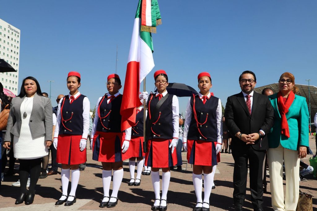 Acompañado por integrantes del cabildo, de servidores públicos de la administración municipal y por estudiantes y escoltas de jardín de niños, primarias, secundarias y preparatorias del municipio; hizo un llamado a renovar el compromiso de ser ciudadanos que no sólo exigen un mejor país, “sino que lo construimos y lo transformamos todos los días, porque la Bandera no sólo representa lo que hemos sido, sino lo que podemos llegar a ser”.