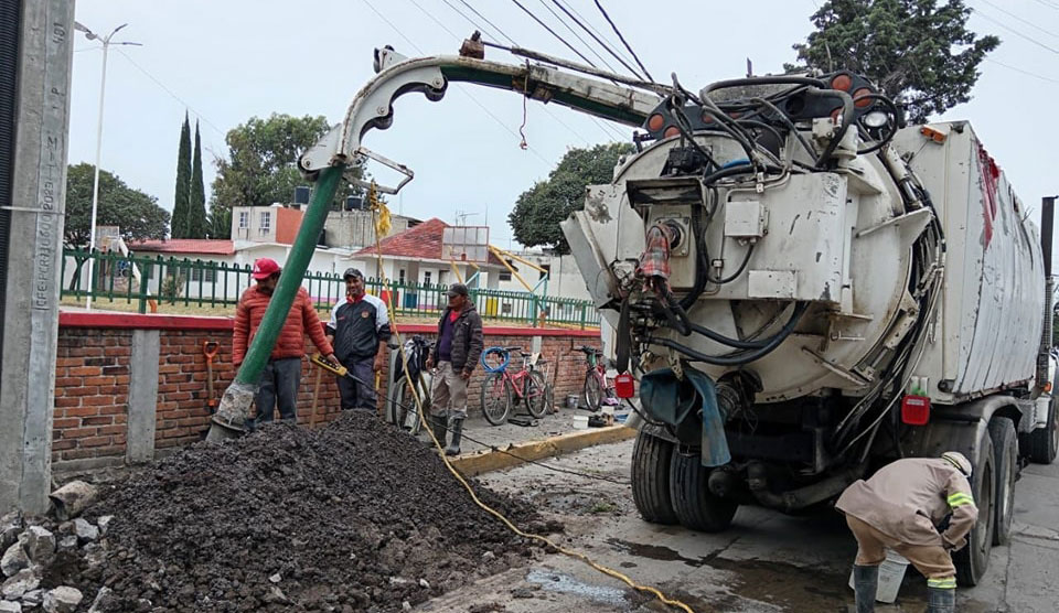 – Apoyo con **vactor** para limpieza de pozos y cisternas, además de reparaciones y sondeos en diversas calles y colonias.