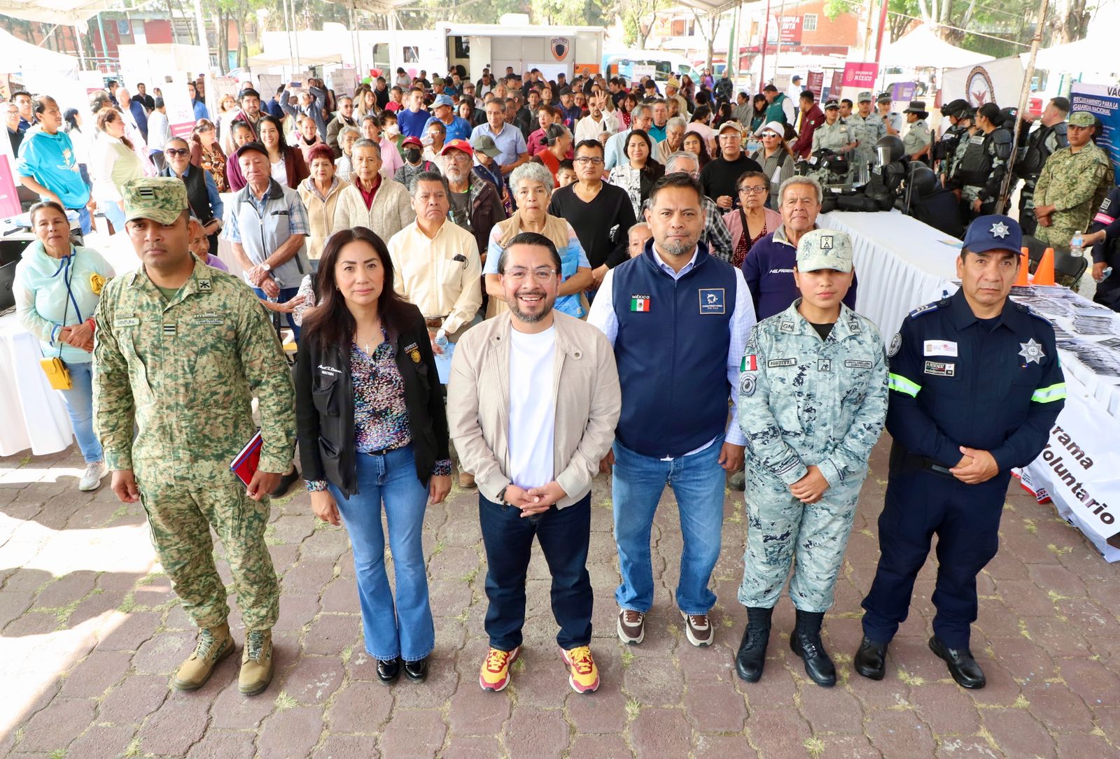 Acompañado también por Sargento Alexis Ventura Mendoza, de la Secretaría de la Defensa Nacional (Sedena); por Katia Liszeth Esquivel Ochoa, de la Coordinación Regional de la Guardia Nacional; por Xóchitl Ramos García, representante de la Secretaría del Bienestar, y por Feliciano Salas Gutiérrez, representante de la Secretaría de Seguridad del Estado de México, el alcalde afirmó que hoy, más que nunca, México se está organizando con un propósito común que es construir la paz desde nuestras raíces.