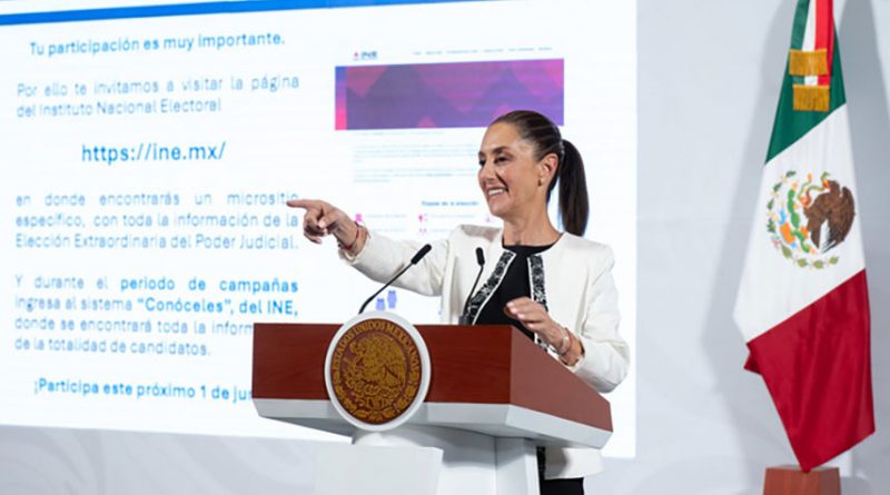 #GobiernoDeMéxico.- La Presidenta de México, Claudia Sheinbaum Pardo, destacó que en la elección del Poder Judicial que se realizará el próximo 1 de junio, además de elegirse a jueces, juezas, magistrados, magistradas, ministros y ministras, se cambiará desde las bases al Poder encargado de la justicia, ya que, también por primera vez, se seleccionará un Tribunal de Disciplina Judicial que evaluará el trabajo de quienes sean elegidos.