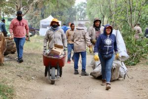 motosierras, desmalezadoras y más de doscientas veinte trabajadoras y trabajadores de OCAVM-CONAGUA, Operagua y Servicios Públicos se ha logrado la limpieza de 5 kilómetros 300 metros del cauce del Río Cuautitlán, con el retiro estimado de 260 toneladas de desechos, transportados en 37 viajes de camión de volteo.
