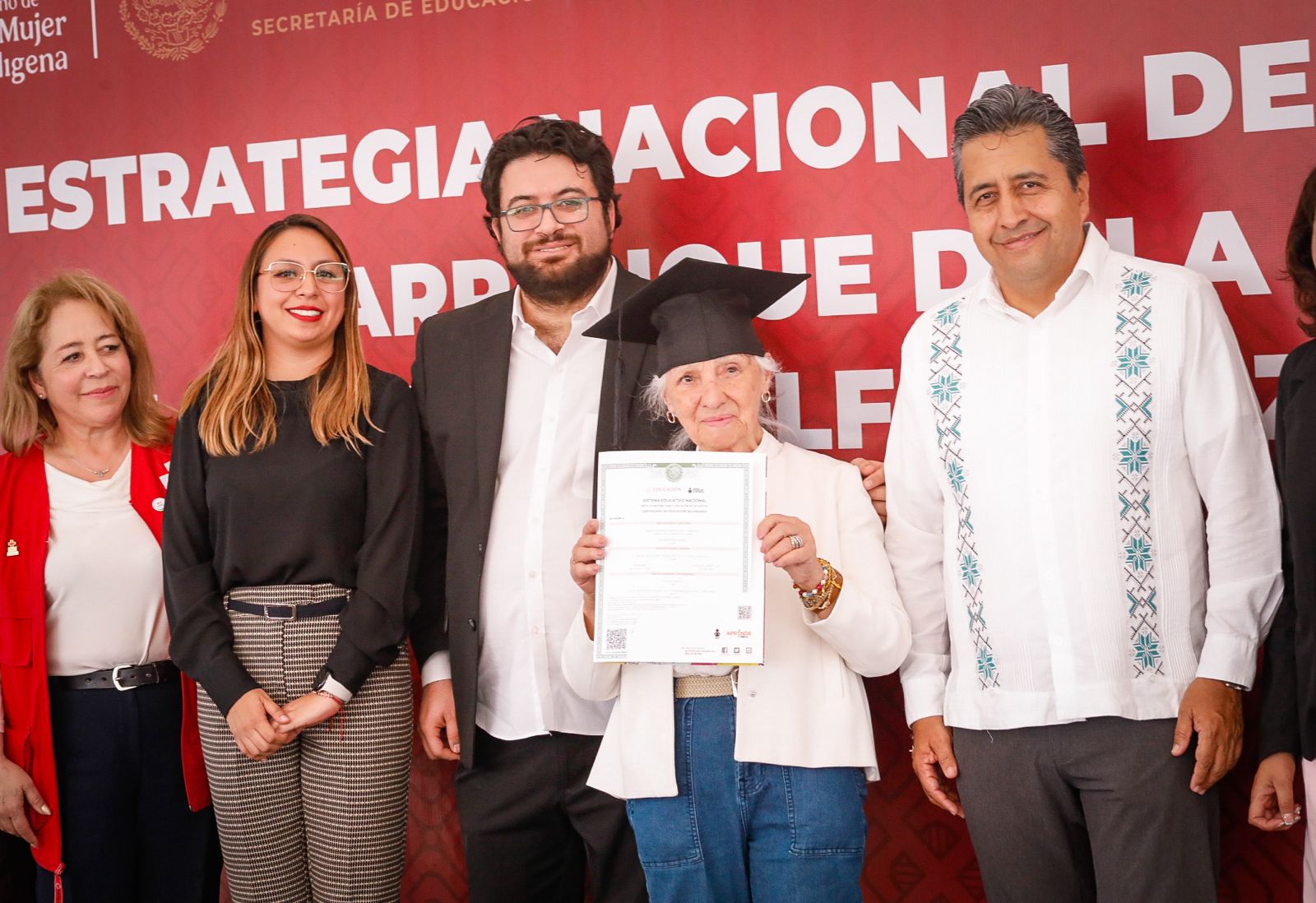 En el evento de arranque, destacó la presencia de la señora María Antonieta, vecina de Naucalpan, quien a sus 90 años, a través de este programa, adquirió las habilidades de la lectura, la escritura, además de conseguir su constancia de estudios de nivel primaria.