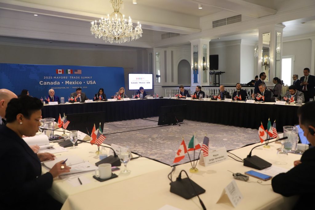 La reunión se denominó Cumbre de Alcaldes 2025 México-Estados Unidos-Canadá: Unidos Protegiendo el Comercio, el Empleo y las Ciudades.
