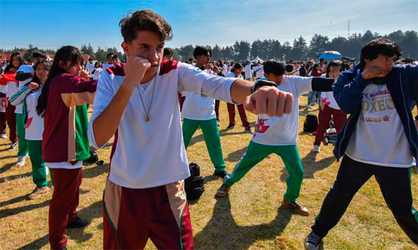 #EstadoDeMéxico.- El Estado de México se subió al cuadrilátero para luchar “Por la Paz y Contra las Adicciones” en la Clase Nacional de Box encabezada por la Gobernadora Delfina Gómez Álvarez, que marcó récord con más de 50 mil participantes que se congregaron en el Parque Ambiental Bicentenario de Metepec, así como en las principales plazas y parques de la entidad.