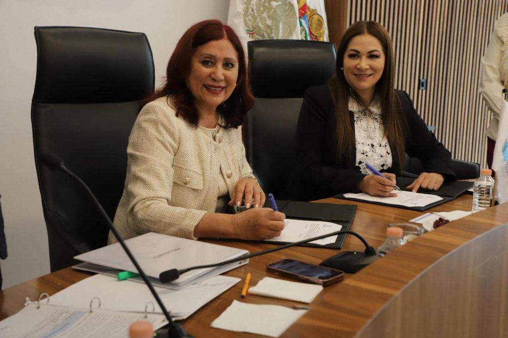 Myrna García y Rosi Wong también firmaron un convenio de colaboración entre la Codhem y el Ayuntamiento de Tecámac, para implementar acciones conjuntas de acuerdo con sus respectivas competencias en materia de protección, orientación, promoción y difusión de los Derechos Humanos