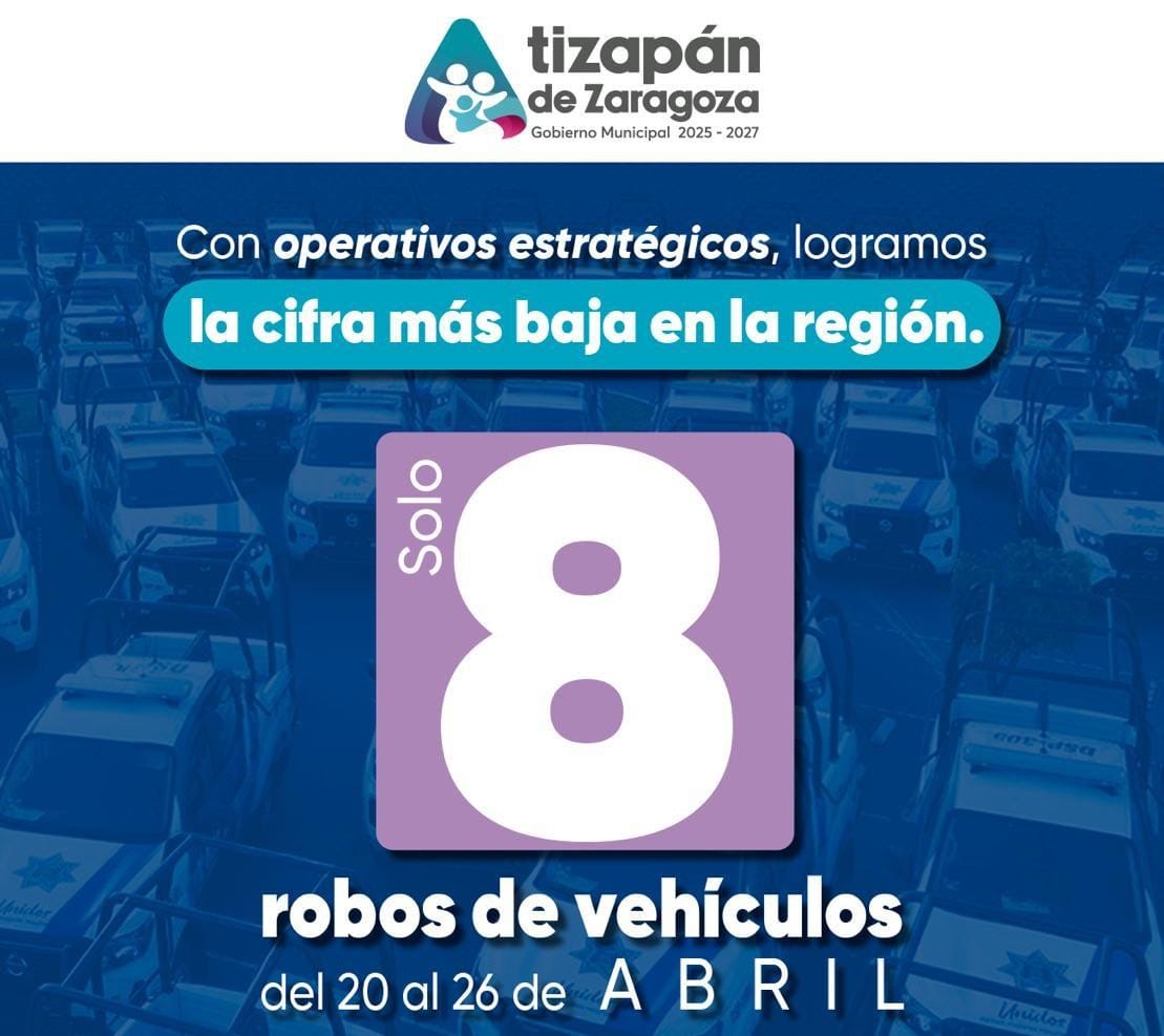 #Atizapán, #Edoméx.- El Gobierno Municipal de Atizapán de Zaragoza, que encabeza el Presidente Pedro Rodríguez Villegas y la implementación estratégica del Comisario Fabián Gómez Calcaneo, ha logrado una notable disminución en el robo de vehículos durante la semana del 20 al 26 de abril de 2025. Las cifras oficiales de la Dirección de Seguridad Pública y Seguridad Vial revelan un total de solo 8 incidentes de robo de vehículos en el periodo, un logro significativo que posiciona a Atizapán como un referente en seguridad.
