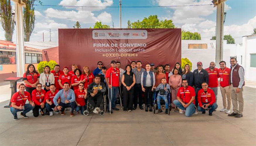 #DIFEM.- Con la firma del Convenio General de Concertación signado por Karina Labastida Sotelo, Directora General del Sistema para el Desarrollo Integral de Familia del Estado de México (DIFEM) y Jorge Alberto Gaytán Fonseca, Gerente Regional de Operaciones de OXXO, región EdoMéx, personas con discapacidad referidas por DIFEM, podrán acceder a empleo formal en las tiendas de dicha empresa.