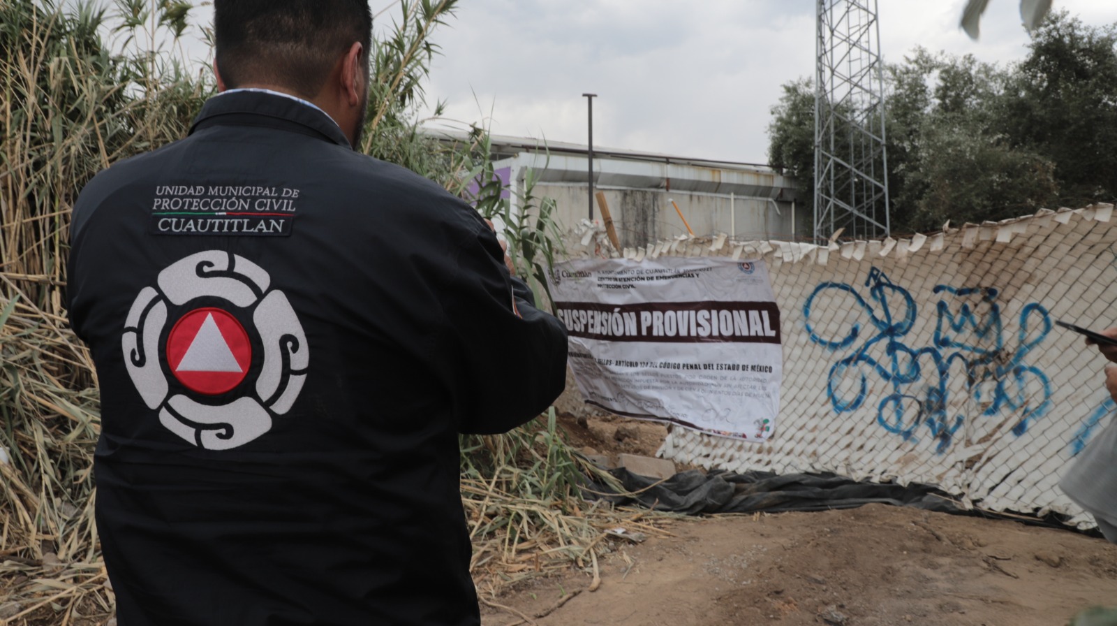 #Cuautitlán, #Edoméx.- En seguimiento a denuncias ciudadanas y a una revisión directa de la zona, el Gobierno Municipal de Cuautitlán, encabezado por la presidenta Juanita Carrillo y a través d ela coordinación de protección civil y bomberos procedió este martes a la colocación de sellos de suspensión en una obra ubicada a un costado del Tren Suburbano, debido al incumplimiento de medidas de seguridad y normativas municipales.