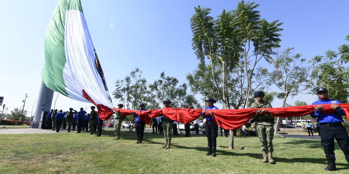 Durante este acto cívico autoridades de la Secretaría de la Defensa Nacional (Sedena) realizaron el izamiento de la bandera nacional y rindieron honores al lábaro patrio.