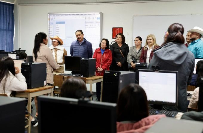 En el mismo municipio recorrió el CONALEP 08, donde se realizaron obras de rehabilitación en las bardas perimetrales, pisos y pintura; además, el plantel ahora cuenta equipo de cómputo, una biblioteca y aulas digitales, con una inversión superior a los 3.2 millones de pesos, provenientes de recursos autogenerados.
