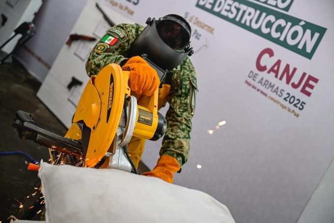 #EstadoDeMéxico.- La Gobernadora Delfina Gómez Álvarez puso en marcha el programa “Sí al Desarme, Sí a la Paz. Canje de Armas 2025, Deja las armas, construye la paz”, el cual forma parte de una estrategia nacional cuyo objetivo es la entrega voluntaria y anónima de armas a cambio de una remuneración económica, con ello se inhibe la violencia en las calles y se previenen accidentes en los hogares.