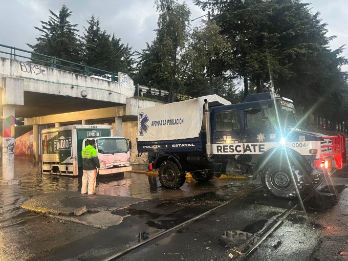 Los Servicio de Urgencias del Estado de México (SUEM) brindan atención permanente a la población con el despliegue de equipo especial de rescate acuático, dos lanchas y tres vehículos de rescate.