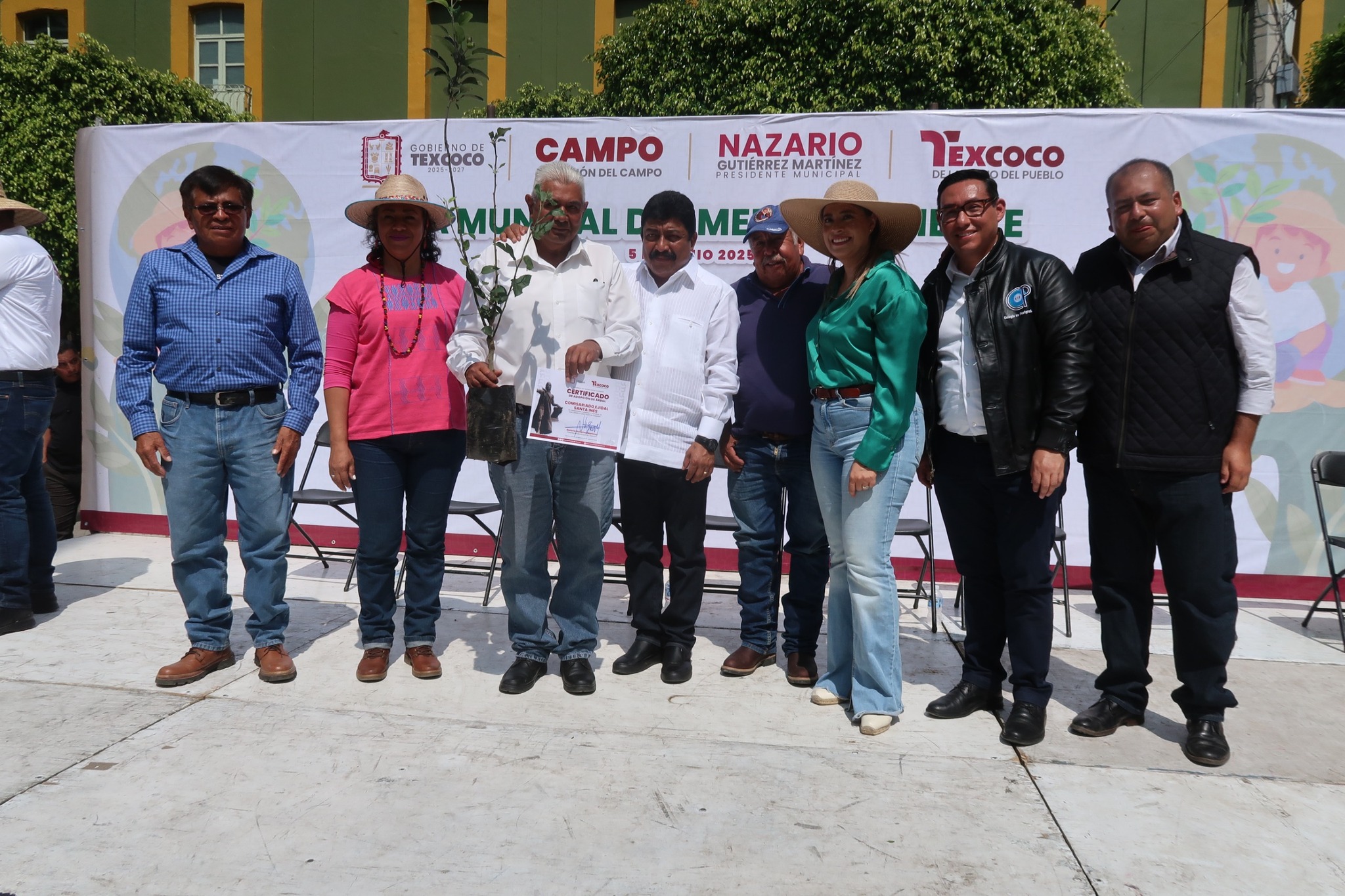 #Texcoco, #Edoméx.- En el marco del Día Mundial del Medio Ambiente, el presidente municipal de Texcoco, Nazario Gutiérrez Martínez, encabezó el inicio de la entrega de 20 mil árboles frutales a distintos sectores del municipio. El evento contó con la participación de la secretaria del Campo del Estado de México, María Eugenia Rojano Valdés; la diputada local, María José Pérez; el delegado de SECAMPO en la región Texcoco, Abraham Noriega; el director de Vinculación del Colegio de Posgraduados, Dr. Ezequiel Arvizu Barrón, y el director del Campo de Texcoco, Jesús Páez.