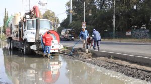 La presidenta municipal supervisó personalmente las labores del vactor (camión de hidrosucción) recientemente adquirido por su administración, con el cual se está apoyando para disminuir los niveles de agua acumulada.