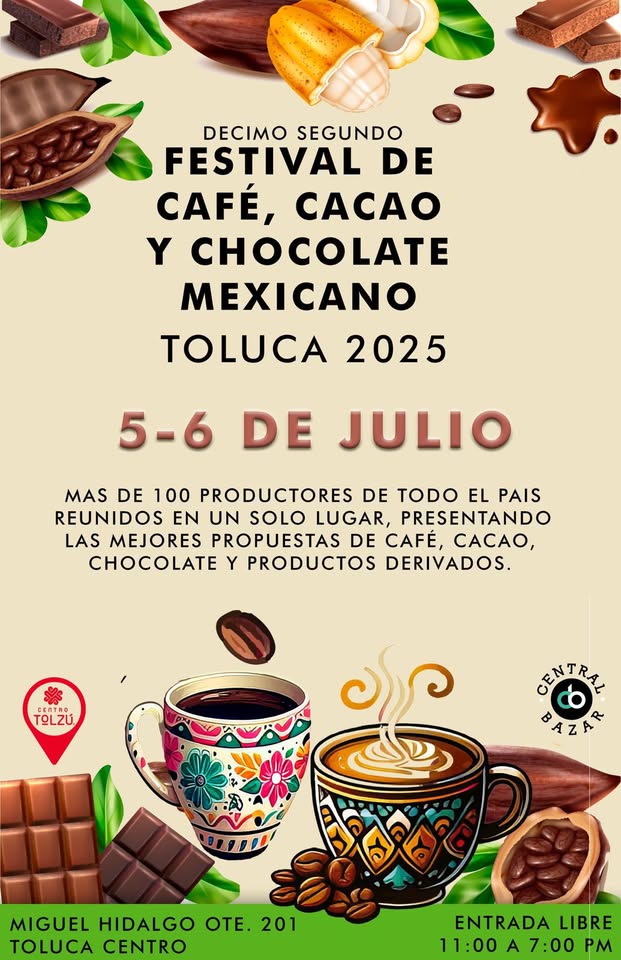 #Toluca #EstadoDeMéxico.- No te pierdas este mega festival. Dos eventos en uno solo!! FESTIVAL DE CAFÉ, CACAO Y CHOCOLATE MEXICANO