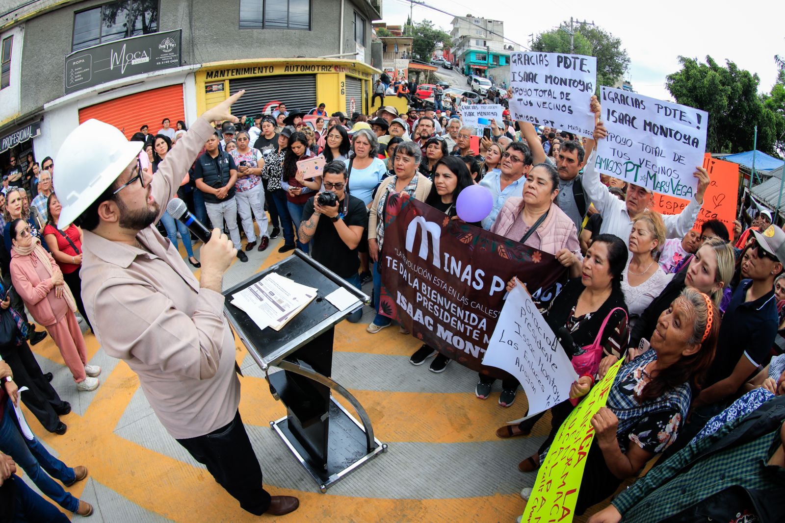 #NaucalpanDeJuárez, #EstadoDeMéxico.- Al entregar la segunda etapa de la rehabilitación con concreto hidráulico de la Avenida Minas Palacio, de la calle Geranio a calle San Marcos, el alcalde de Naucalpan, Isaac Montoya Márquez enfatizó que se trata de una obra requerida por décadas y también olvidada por muchos gobiernos, pero que ahora se avanza en la sustitución de la carpeta asfáltica de 2.6 kilómetros de esta vialidad.