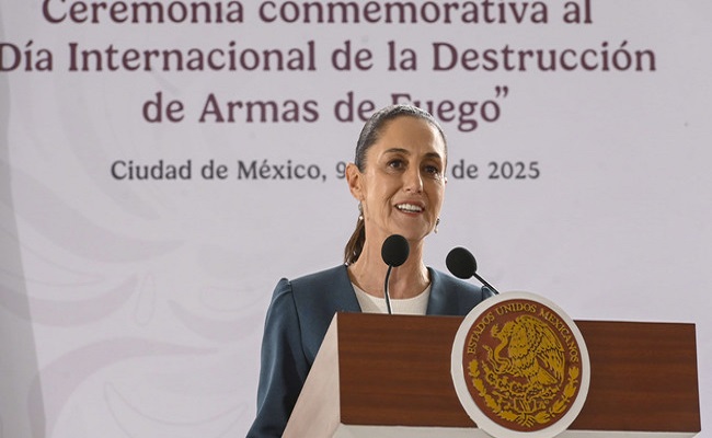 #GobiernoDeMéxico, #México.– En el marco de la conmemoración del Día Internacional de la Destrucción de Armas de Fuego, la Presidenta de México Claudia Sheinbaum Pardo celebró el programa Sí al Desarme, Sí a la Paz, —el cual ha permitido sacar de las calles 2 mil 135 armas de fuego entregadas voluntaria y anónimamente— y animó a que en todo el país se atiendan las causas que generan la violencia.