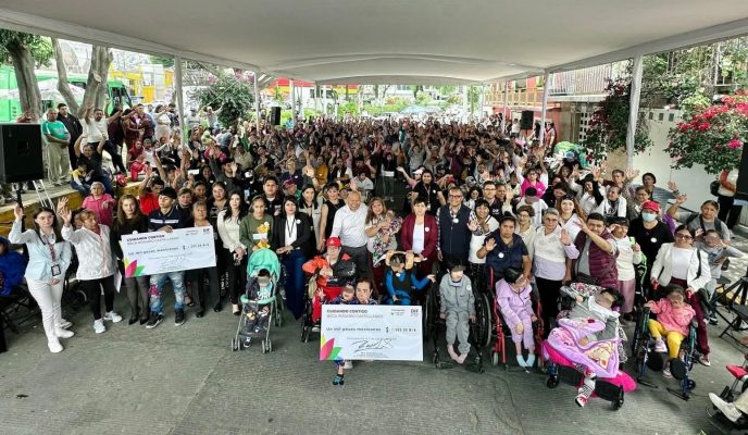 La Presidenta Honoraria del DIF Tlalnepantla Rocío Pérez Cruz, detalló que son 100 beneficiarios con la entrega de estas becas, quienes han cuidado a personas con discapacidad y adultos mayores para visibilizar a este sector que hoy tiene la oportunidad de continuar realizando esta labor.