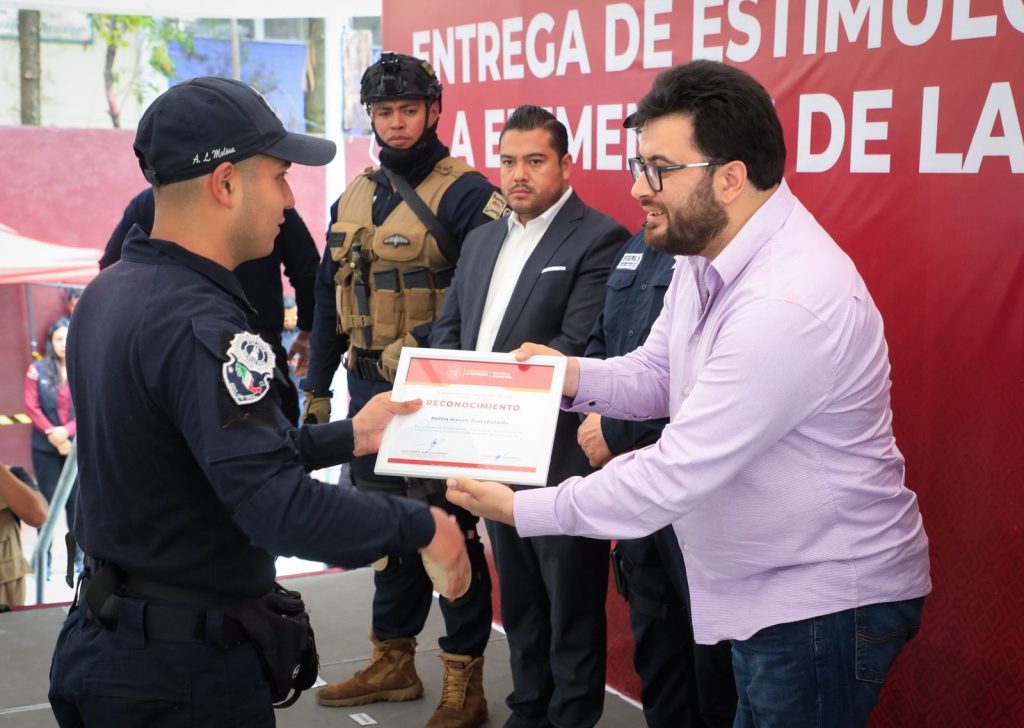 El presidente municipal, encabezó la cuarta entrega de estímulos y reconocimientos, a los elementos por actuar en diversos hechos reconocidos por el gobierno municipal: portación de arma prohibida, robo de vehículo con violencia, posesión ilícita de hidrocarburos, delito de robo con violencia a transporte de carga y detención a banda de robo de vehículos con seguimiento de drones.