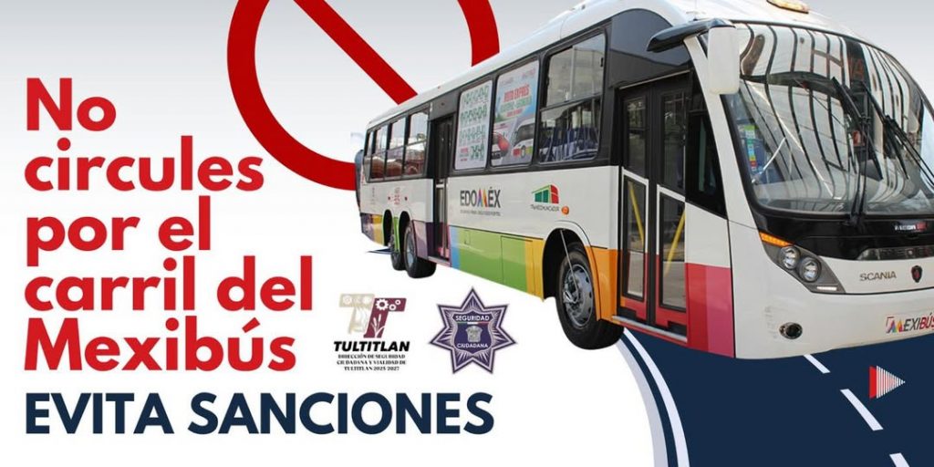 El Gobierno Municipal de Tultitlán, encabezado por la alcaldesa Ana María Castro Fernández, hace un llamado a la ciudadanía para respetar el carril confinado del Mexibús. Esta vía está destinada únicamente al transporte público articulado. Su uso indebido pone en riesgo la seguridad vial. Además, retrasa el servicio y afecta a miles de usuarios.